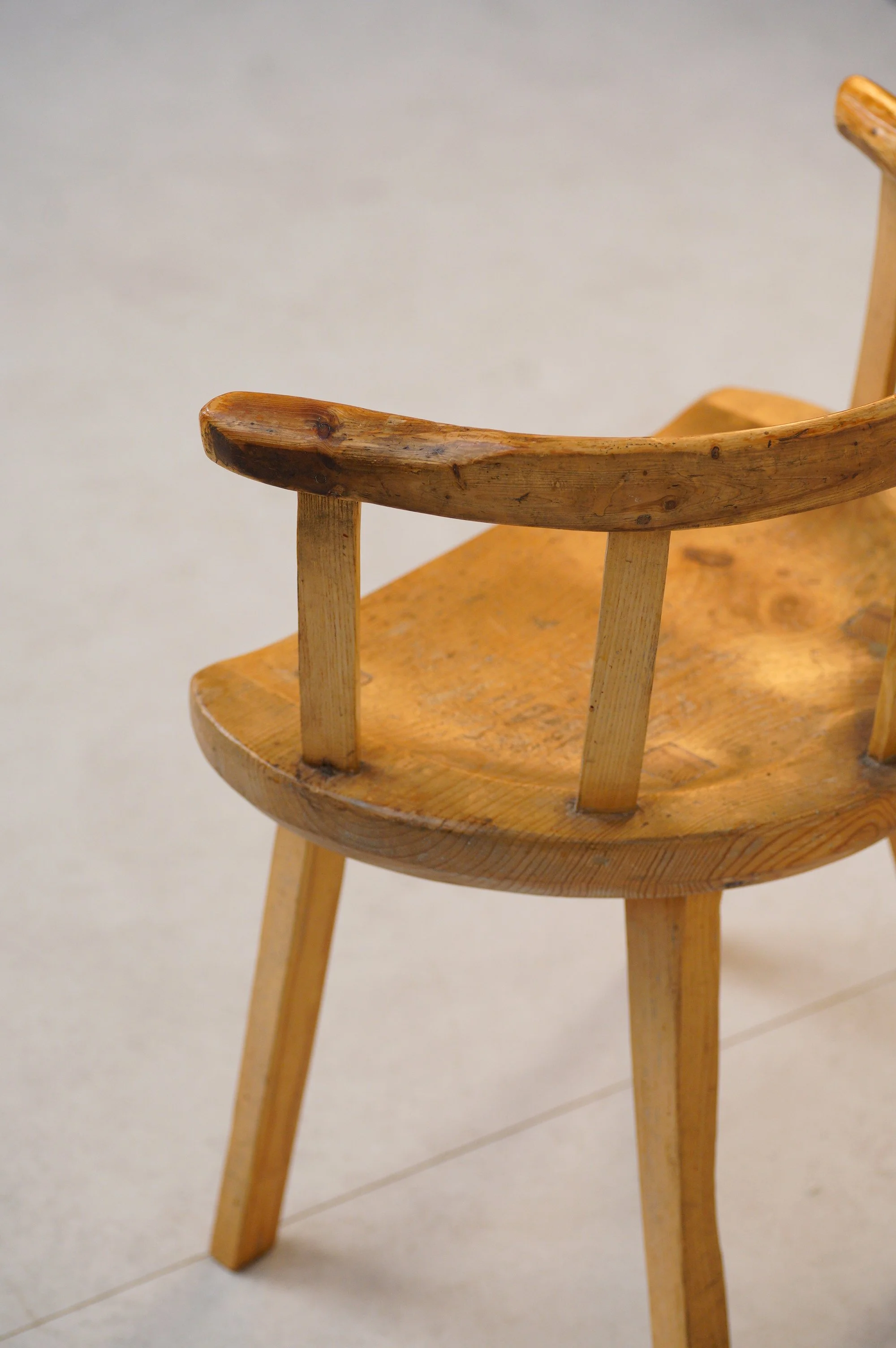 This unique, primitive Swedish folk armchair was handcrafted from warm, honey-hued pine at the end of the 18th century. The chair’s sculptural form and rich patina speak to centuries of use and care, adding a deep sense of history and authenticity.